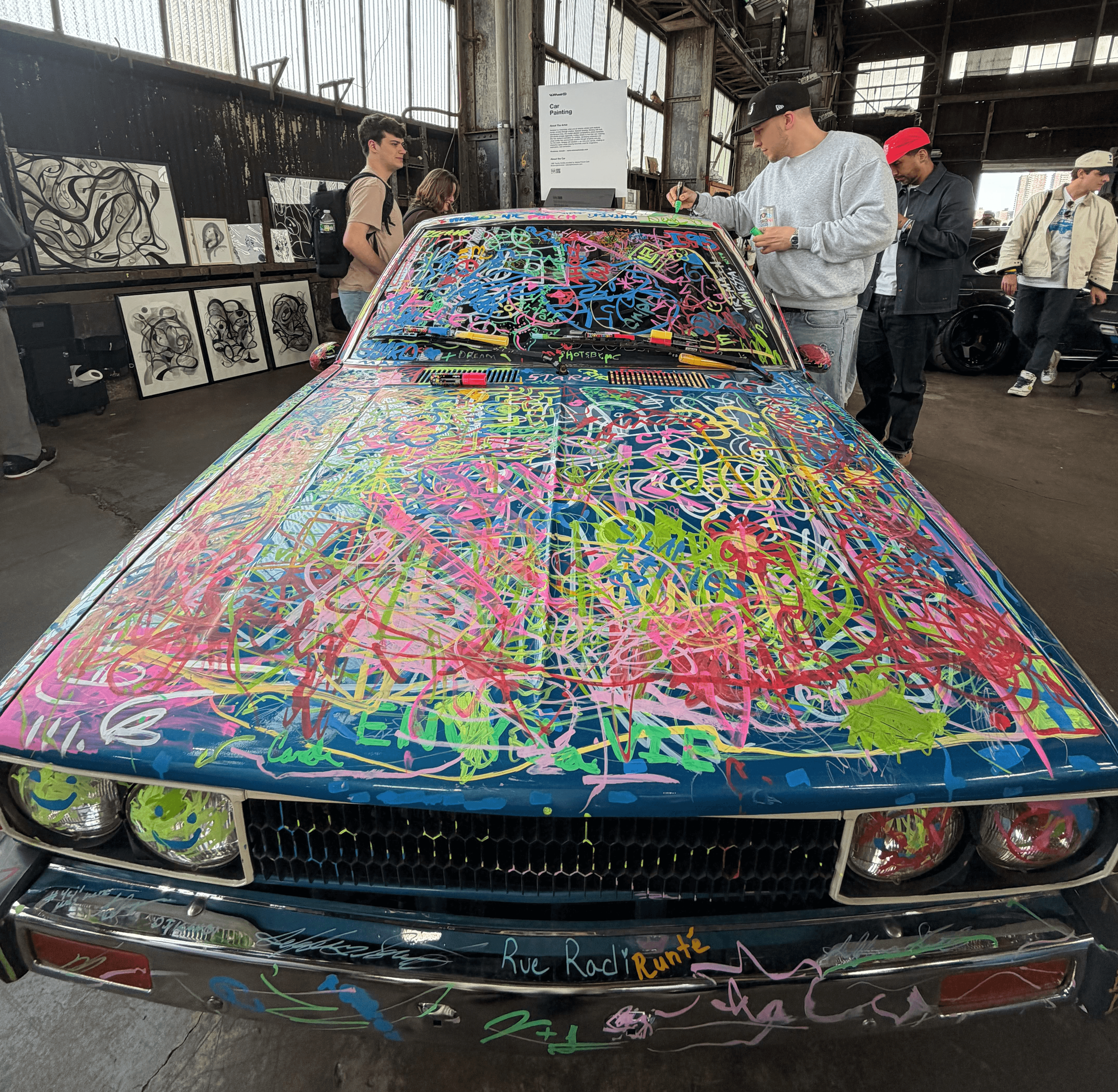 Creativity could be grasped at this year’s Wheels of NYC event. It was everywhere, and it was impossible to ignore. Next to Vanessa Tremain’s “Car Painting,” a car made into a live canvas where attendees could interact, draw on, and express their imagination, I saw Kwaku, also known as Sir Kwaxs, locked in, sketching a white De Tomaso Pantera in front of him.