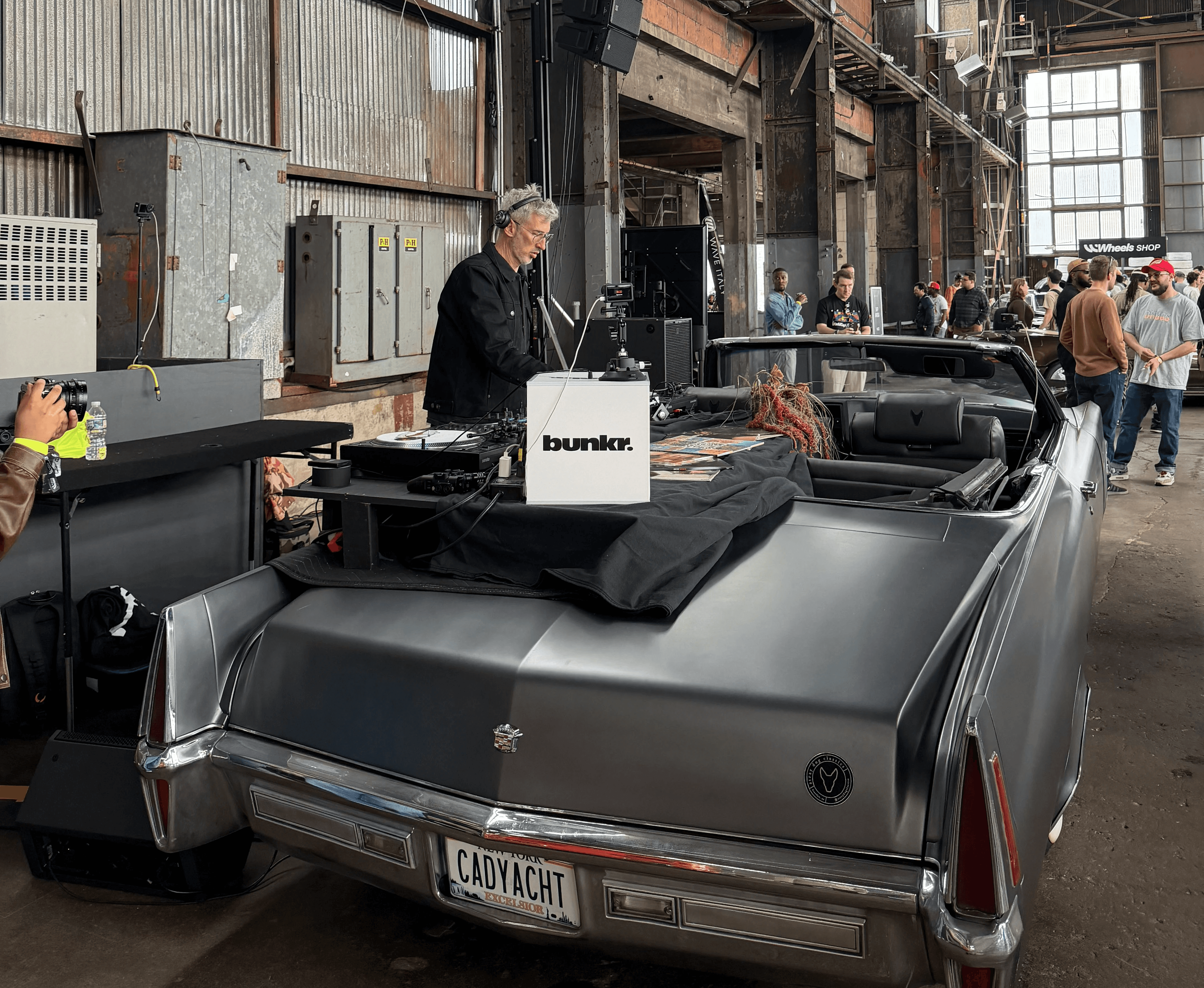 After a few conversations with other creatives and many pictures of mind-blowing car colors, I saw a group of guys behind Stretch Armstrong, a NYC-native DJ, as he played his own version of Bam Bam by Sister Nancy (which I had to add to my playlist later). I couldn’t interrupt the set as we were all bopping our heads and enjoying ourselves, so I decided to talk to that group of guys behind Stretch. They were all part of Bunkr, a creative studio and community space for DJs based in New Jersey, focused on giving both emerging and established DJs access to high-quality equipment and a place to practice, create, and grow.