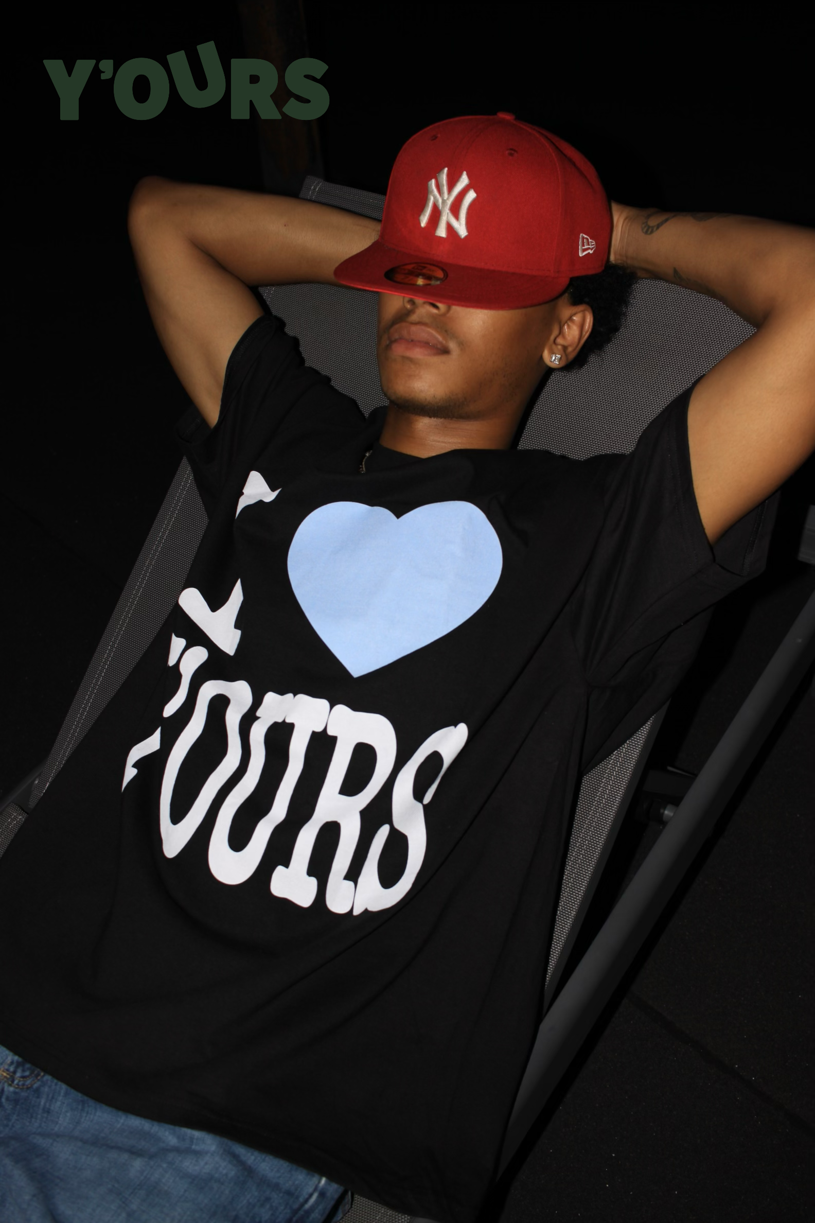 Andre wearing a “I 🩵 Y’Ours” tee from the Y’Ours F/W 23 Capsule